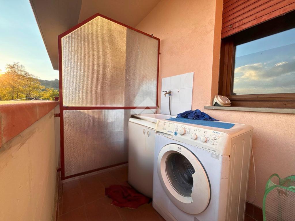 L'appartamento è composto da soggiorno con balcone, cucinotto, ripostiglio, bagno finestrato e camera matrimoniale con accesso al secondo balcone adibito a lavanderia.